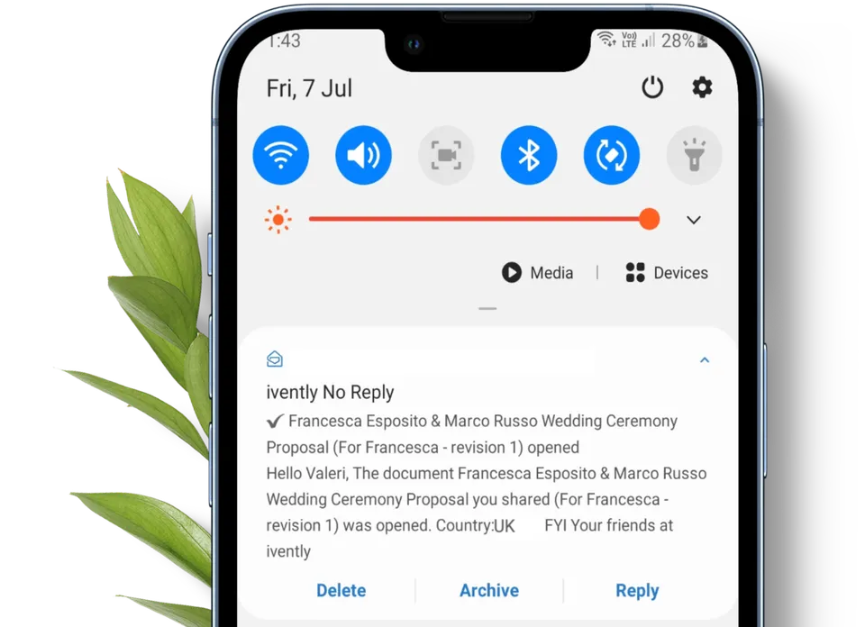 Get notified by email when your client opens your proposal so you can perfectly time your follow-up.